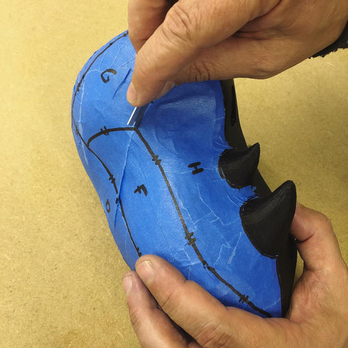 Process of creating a head pattern for a mascot suit.