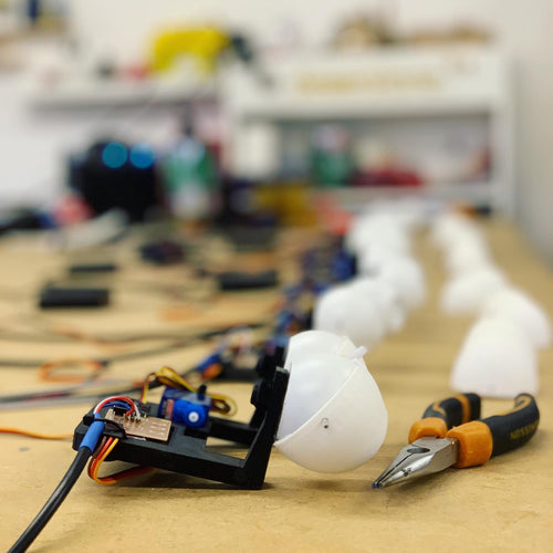 Bespoke animatronic robot with moving eyebrows and head machanisms. Used internationally for conferences and techology presentations.